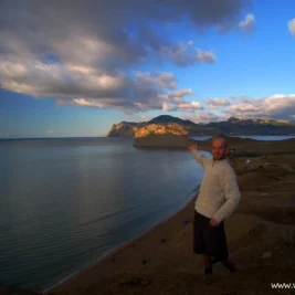 Z jednej strony stepowa, niemal księżycowa kraina, nasiąknięta brunatnymi wzgórzami i pagórkami, a z drugiej błękit Morza Czarnego i piaszczyste plaże. W oddali panorama Koktebel, niedużego...