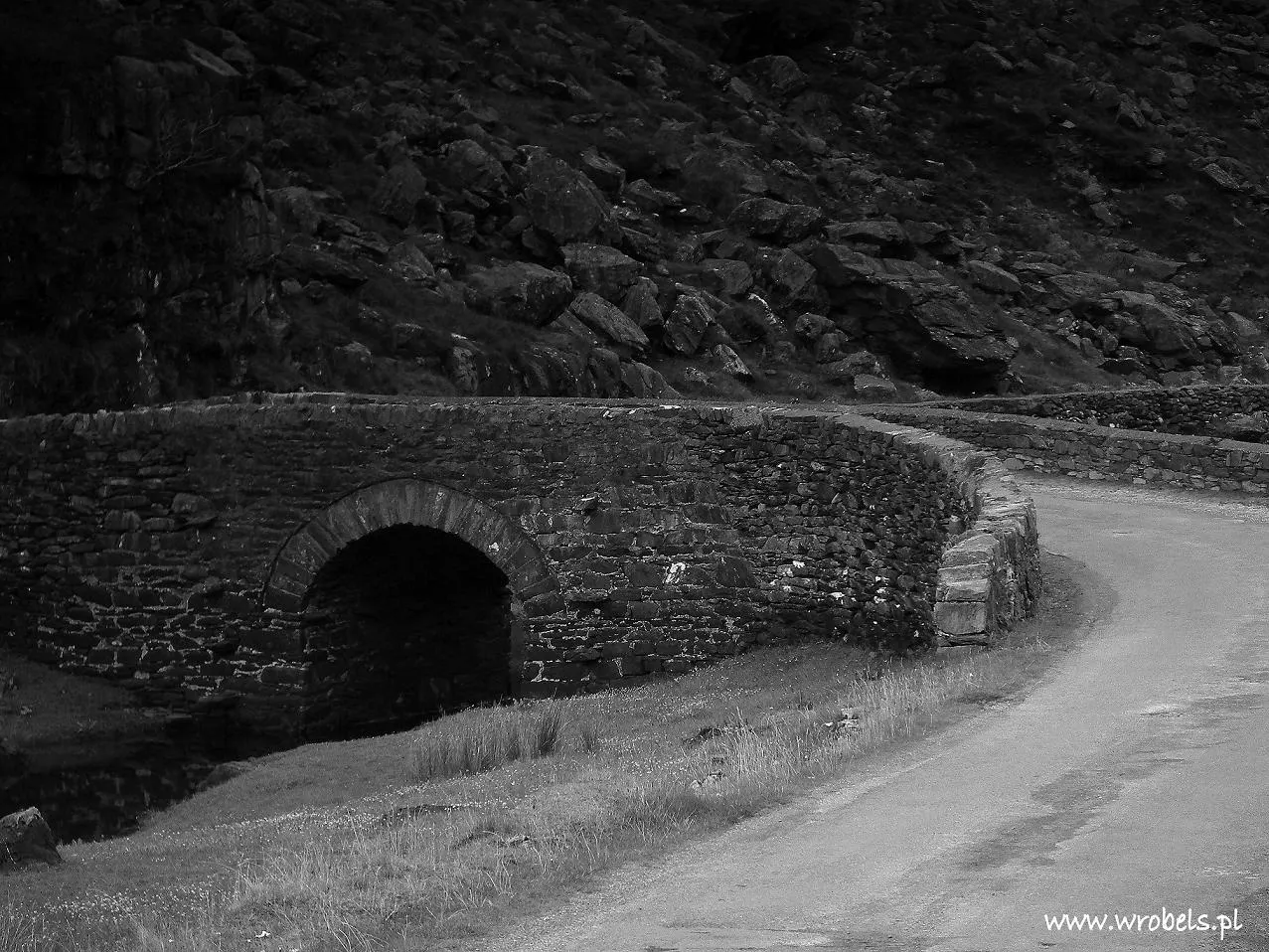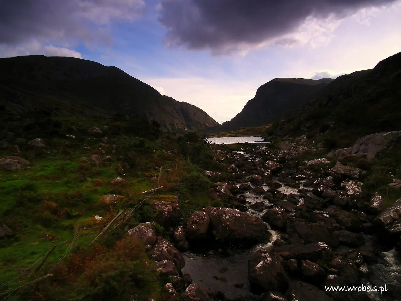Zjechaliśmy dziewięćdziesięcio stopniowymi serpentynami w dół, pożegnaliśmy się z głupkowato patrzącymi na nas, pasącymi się na Upper Dunloe, kozami i po chwili przejeżdżaliśmy wzdłuż jeziora. Ten akurat fragmencik okazał się wyjątkowo uroczy: droga parę razy zakręciła, minęła kilka leżących obok niej głazów a następnie ciągnęła się tuż nad wodą. Była przyklejona do jednego z brzegów jeziora, co dawało na prawdę fajny efekt. Z jednej strony spokojna tafla wody, z drugiej wysokie ściany, ostre skały i niemalże pionowe urwiska. Patrzeliśmy na góry, pagórki, spoglądaliśmy na porozrzucane kamienie i skalne bryły, na zielone wzgórza, krzewy, drzewa. Przypatrywaliśmy się skrupulatnie całości, wiedząc jednak niestety, że są to nasze podróżnicze ostatki. Gap of Dunloe była ostatnią pozycją, do której dotarliśmy i którą poznaliśmy. Miejscem niesamowicie wyjątkowym. ,,Jedyne takie” – korzystając ze słów znanej reklamy.