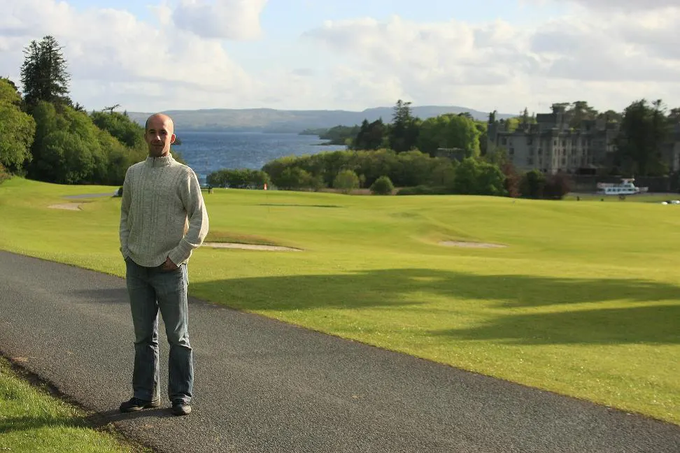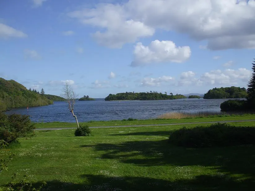 Podjechaliśmy pod główną bramę. Wejścia strzegł strażnik – niezły gaduła – poinformował mnie o wszystkim, zachwalając przy tym Ashford Castle i obszerny teren wokół w taki sposób, że jeszcze bardziej chciało nam się wjechać do środka. Chociaż z drugiej strony, słuchając tego gawędziarza, można było się uśmiechnąć i troszeczkę przymknąć oko. W momencie, kiedy stwierdził, że mam longfordzki akcent, zrozumiałem że jego bajania są na potrzeby turystów. Wjechaliśmy do środka szczuplejsi o 10 euro i podążyliśmy w kierunku Zamku. Wiedzieliśmy wcześniej, że obszar Ashford Castle jest ogromny i w pełni się to potwierdziło. Aby dojechać do celu trzeba pokonać około 2 kilometry wąską drogą, otuloną polami golfowymi oraz mnóstwem drzew i krzewów. Pokonawszy ten odcinek, naszym oczom ukazała się okazała budowla – Ashford Castle, a za nim bezkres Lough Corrib. Stylowy Zamek o charakterze Wiktoriańskim z 7 wiekami na karku, prezentował się fenomenalnie. Zresztą nie może być inaczej, skoro dzisiaj znajduje się tam 5 – gwiazdkowy, elegancki i wytworny Hotel. W przeszłości hotelowymi gośćmi były takie osobistości jak: Henryk V – król Anglii, pisarz Oscar Wilde, Amerykański prezydent Ronald Reagan, Książę Edward, Amerykańskie Senator Edward Kennedy (Brat J.F. Kennedyego), aktor John Wayne czy też Książe Monaco Rainier III z Księżną Grace.