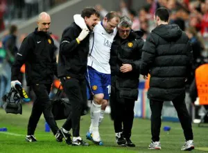 Tuż po ostatnim gwizdku sędziego na Allianz Arena, Anglicy wstrzymali oddech… To, że Rooney jest kontuzjowany wiadomo było od momentu jego kolizji z Gomezem. Nienaturalne skrzywienie stopy zwiastowało tylko i wyłącznie kłopoty. Każdy się modlił i prosił Boga o najkorzystniejszą diagnozę. Dzisiaj już wiadomo więcej. Rozbrat z piłką trwać będzie najprawdopodobniej od 2 do 4 tygodni. Czyli najbliższy ligowy mecz, tpfu! nie mecz tylko prawdziwe starcie gigantów bo na Old Trafford przyjeżdża stołeczna Chelsea odbędzie się bez najlepszego strzelca Premiership. Następnie rewanż z Bayernem w połowie przyszłego tygodnia również bez pomocy snajpera rodem z Liverpoolu. Tej chwili obawiali się fani Diabłów, patrząc na dokonania w tym sezonie, gdzie Wayne zdobył już 26 bramek w lidze (MU ma ich 76), ma 5 trafień w Lidze Mistrzów, 2 gole w Pucharze Ligi, widać gołym okiem, że jest on niezastąpiony i robi różnicę. Ciężko stwierdzić czy ta nieobecność wpłynie ujemnie na grę Manchesteru, wszystko wskazuje na to, że jednak tak choć oczywiście wcale nie musi być to pewnikiem. Co do wczorajszego spotkania to lepiej się ono dla gości zacząć nie mogło. Juz w drugiej minucie, za sprawą bohatera tego wpisu, Manchester wyszedł na prowadzenie. Tuż przed końcem skutecznym wolnym popisał się Ribery (piłka odbiła się od nogi Rooneya i zmyliła Van der Sara…) doprowadzając do remisu a gwoźdź do trumny przybił Ivica Olic, który w 93 minucie ustalił wynik spotkania.
