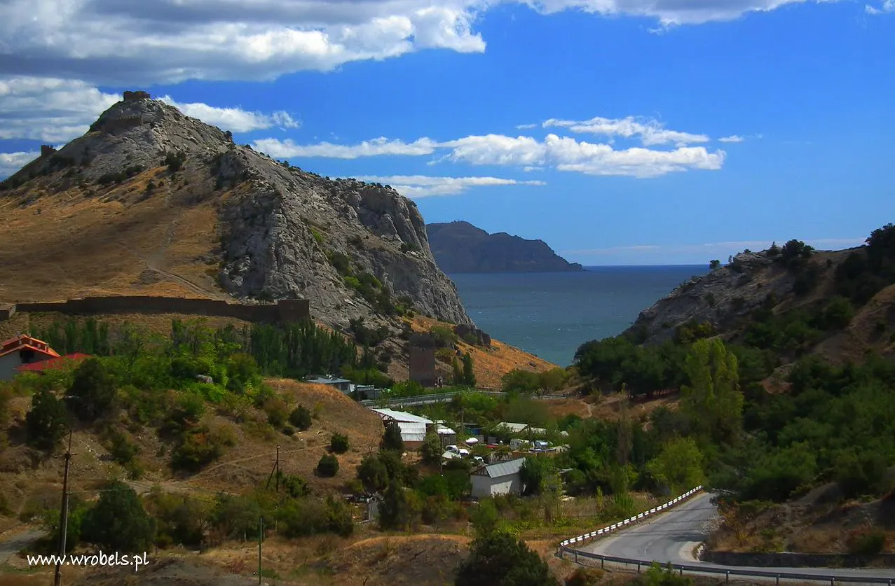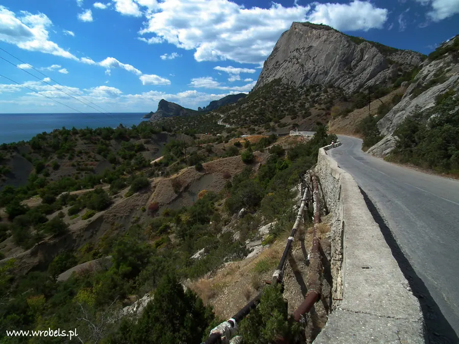 Zanim znaleźliśmy się w Nowym Świecie musieliśmy pokonać – jak się okazało ostatni tak długi podczas tej podróży – odcinek, który łączył Novy Svet z Sudakiem. Należy dodać, że droga, którą maszerowaliśmy usytuowana jest niezwykle urokliwie. 8 kilometrów zakrętów, wzniesień, zejść – szło się spokojnie, choć trzeba przyznać, że słoneczko tego dnia nas nie oszczędzało, jednakże nie marudziliśmy, mając na uwadze przednie widoczki i gdzieś tam w nieodległej przyszłości orzeźwiającą kąpiel w morzu. Nie omieszkaliśmy również kilka razy się zatrzymać na trasie, wszak grzechem by było, gdybyśmy dali uciec fragmentom jedynego w swoim rodzaju pejzażów i nie uwiecznilibyśmy ich na zdjęciach. Przechadzka trwała, jak już wcześniej wspomniałem na zwykłej drodze (P35), w związku z tym co jakiś czas mijaliśmy się z autami osobowymi, marszrutkami czy też autobusami.
