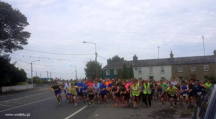 Tym razem nie miałem zamiaru (przynajmniej w założeniach, bo Abbeyshrule Run pokazał, że plan planem a wyścig wyścigiem) tak do końca zostawić tego losowi, założyłem sobie, że będę miał kontakt z czołówką. Oczywiście nie mogłem wiedzieć, kto jaki prezentuje poziom, pomimo tego czułem, że pierwsza 20 jest spokojnie w zasięgu. Z tłumu, jeszcze przed startem wyłowiłem dwie znajome twarze; dwóch kolesi, którzy według mnie byli murowanymi kandydatami do podium. Jeden zwyciężył na 10 km w Abbeyshrule, a drugi znany mi był od lat z Longford, widywałem go niejednokrotnie podczas ulicznych treningów i już wtedy wiedziałem, że ma talent i ogromną smykałkę do biegania. A po drugie jest członkiem triathlonowego klubu w Longford, więc parę i kondycję ma odpowiednią. Oprócz nich było parę osób, które wydały mi się konkretne i z którymi trzeba się będzie pościgać.