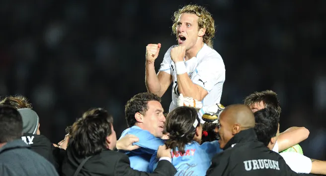 Sergio Batista znów nie potrafił w odpowiedni sposób poukładać swoich podwładnych, nie potrafił im wpoić ducha walki i wiary w zwycięstwo. A może to gracze są sami sobie winni? Zmęczeni długim sezonem (Messi rozegrał wczoraj 66 mecz!), wierzący zbyt mocno we własne umiejętności i myślący, że gospodarzom turnieju krzywda stać się nie może? Nie tym razem. Zawiodło wszystko po trochu, zawiódł w jakiś sposób trener, zawiodły gwiazdy z Leo Messim na czele, zabrakło szczęścia i wyrachowania. Co prawda Argentyna przez lwią część spotkania miała optyczną przewagę, operowała częściej piłką, oddała więcej groźnych strzałów. Jednak co z tego skoro przez godzinę nie potrafiła wykorzystać gry z przewagą jednego zawodnika? Skoro w tempie za bardzo jednostajnym, bez odpowiednich zrywów i pomysłowych akcji, próbowała dobrać się do skóry świetnie i szalenie skutecznie broniącym się Urugwajczykom? Czasami się to udało ale wtedy albo piłka trafiała w słupek albo na drodze stawał fenomenalny Muslera. 25 letni bramkarz Galatasaray przechodził samego siebie i udowodnił, że należy bezsprzecznie do najlepszych golkiperów tego turnieju. Gdy jakimś cudem żelazna obrona z Diego Lugano za jej sterami, dała się Argentyńczykom wymanewrować to z pomocą przychodził właśnie bramkarz Urugwaju. To on, w głównej mierze spowodował, że piłkarski świat zawalił się Argentynie w momencie najmniej dla jej samej spodziewanym. Popisywał się refleksem, robinsonadami, pewnością siebie i odwagą. W najważniejszym momencie wprawił w osłupienie całe Santa Fe, cały Argentyński naród, łapiąc w konkursie jedenastek rzut karny, fatalnie wykonywany przez Teveza… Rzecz jasna nie tylko Muslera był ojcem sukcesu. Solidnie na ten triumf zapracowali wszyscy Urugwajczycy, zarówno jako całość jak i każdy z osobna. Każdy jak należy zrobił swoją robotę, zaczynając od Oscara ”El Maestro” Tabáreza – trenera doświadczonego, z wyczuciem dokonującego zmiany, prawdziwego przywódcy, poprzez skutecznie i twardo grającej defensywy aż po niezwykle pożyteczny i chwilami bardzo groźny atak, w którym pierwsze skrzypce grali Diego Forlán i Luis Suárez – dla mnie obok wspomnianego Fernando Muslery, Diego Lugano i jeszcze Álvaro Pereiry a także Arévalo Ríosa najlepsi zawodnicy tego meczu.