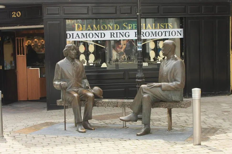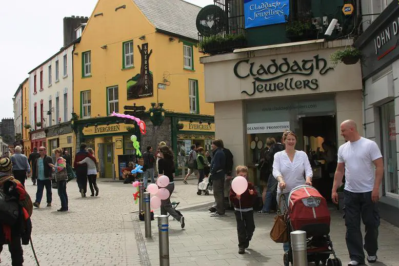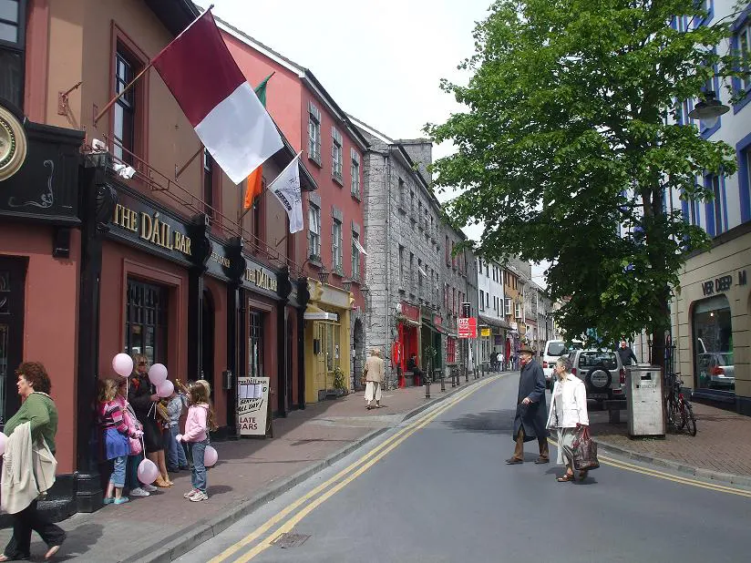 Wjechaliśmy do miasta drogą R339 i skierowaliśmy się w stronę centrum. Pierwsza myśl: zaparkować gdzieś auto w miarę blisko serca miasta. Myśl kolejna: przejść się głównym deptakiem i uszczknąć trochę atmosfery gaeilge. Parking, pomimo że utknęliśmy w delikatnym korku, udało się w miarę bezboleśnie znaleźć. Kilkupiętrowy, podziemny i naziemny budynek sąsiadujący z dworcem pociągowym i autobusowym, przygarnął nasz samochód pod swoje betonowo-stalowe skrzydła, więc teraz zdani już tylko na siłę własnych nóg udaliśmy się na przechadzkę. Tuż obok dworca znajduje się J.F Kennedy Park, czyli sporych rozmiarów skwer z ławkami, fontanną, mnóstwem zieleni w postaci traw i drzew. Generalnie jest to miejsce do spotkań towarzyskich bądź też do odsapnięcia i wyłączenia się na chwilkę z miejskiego zgiełku. My na odpoczynek nie mieliśmy ani czasu ani chęci, to też przez plac Kennedyego przeszliśmy niezauważalnie, mijając przy tym leniwie siedzących bądź leżących ludzi. Dokąd zmierzają ludzie odwiedzający Gaillimh? Na pewno kierują się na Williamsgate Street, która z biegiem metrów kolejno zmienia się w Shop Street, High Street i Quay Street. Wszystkie te uliczki tworzą główną arterię miasta, po której uczęszczać mogą wyłącznie piesi. Po obu stronach tego deptaka jest mnóstwo sklepów i sklepików, mijaliśmy mimów, ulicznych grajków czy też rozdawaczy rozmaitych, reklamowych ulotek. A oprócz nas morze ludzi, jedni – zapewne miejscowi, pędzili gdzieś żwawo przed siebie, inni – tak jak my przechadzali się nieśpiesznie a jeszcze inni siedzieli przy Guinnessie w gęsto rozsianych knajpkach. Galway jak na warunki irlandzkie jest dużym miastem (ze swoimi 72 tysiącami mieszkańców zajmuje 3 miejsce w kraju). My zobaczyliśmy tylko niewielki fragmencik tego jakże interesującego miasta, a zwiedzać, zapewniam, jest co. Do najważniejszych zabytków zalicza się: