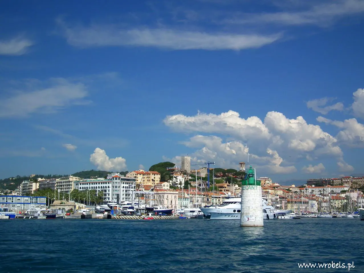 Mamy wyspę. Trzeba się na nią jakoś przetransportować – jak? Najłatwiej jest przepłynąć statkiem. Sprawa jak się okazało banalnie prosta aczkolwiek za pierwszym razem zdaliśmy się na pomoc naszej koleżanki, która zaprowadziła nas do portu, z którego odpływały promy. Szybki, ranny przejazd autobusem miejskim (linia numer 8 ) wzdłuż Bulwaru de la Croisette, wysiadka na ostatnim przystanku tuż przy Hotel de Ville, krótki marsz obok portowej mariny i po niespełna 30 minutach jesteśmy przed kasami. Pogoda tego dnia (zresztą każdego dnia praktycznie) dopisywała, czyli niebo nad nami było koloru blue, słoneczko ogrzewało aż miło a chmurki porozstawiane gdzieniegdzie wcale nie zapowiadały deszczu. Wczasować się i nie umierać – chciałoby się rzec. Najpierw jednak należało znaleźć się na pokładzie stateczku wycieczkowego a następnie już na samej wyspie.