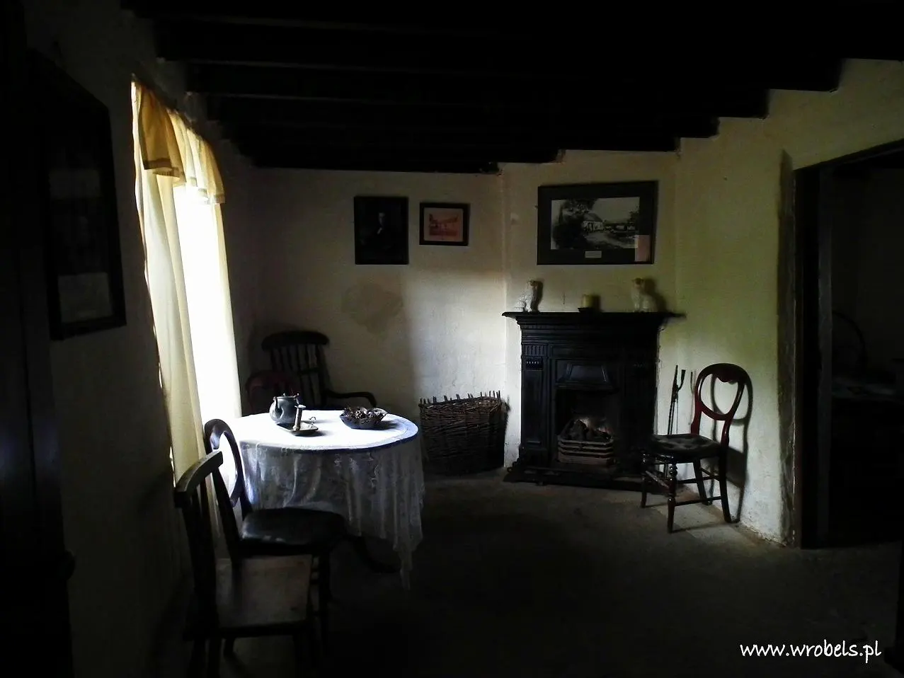Pierwotnie w domu znajdowały się dwa pokoje, oryginalna sypialnie była na lewo od kuchni, teraz jest tam salon oraz mały, tylni pokój. W późniejszym terminie dodano drugą sypialnię. Stół zastaliśmy zastawiony, paliły się świece a w kominku tańczyły ogniste jęzory. Pani domu przechadzała się po kuchni, jakby nie zwracając na nas uwagi. Łóżka świeżo pościelone, obrazy na ścianach wiszące i pięknie zdobione talerze zamknięte w kuchennej komodzie. Życie toczy się dalej, pomimo, że pierwotni mieszkańcy dawno już poumierali…
