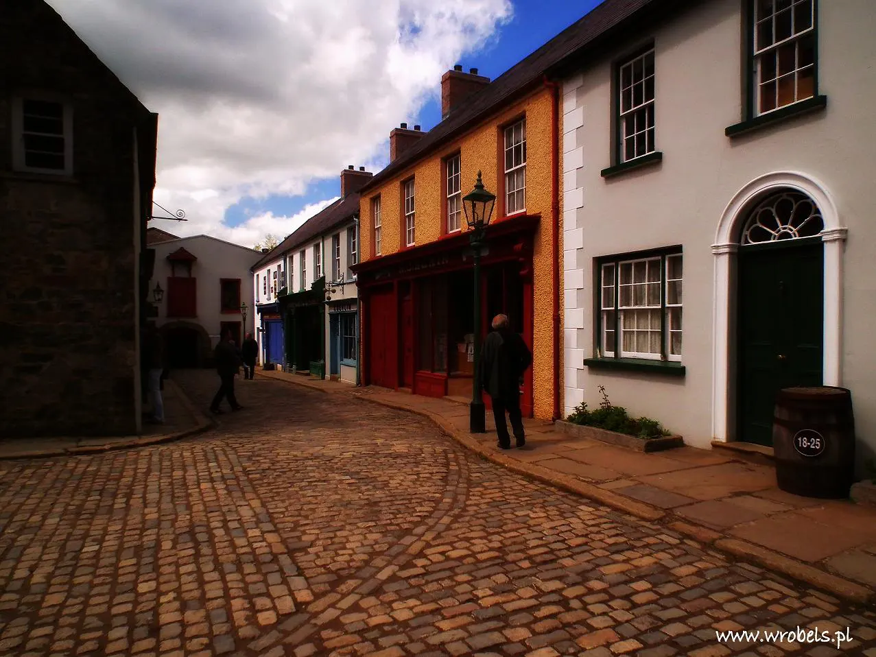 Pozostawiliśmy za sobą cały,,wiejski” Ulster i pomału zmierzaliśmy w kierunku jak gdyby serca Parku. Pisałem na początku, że historia zawarta w UAFP jest jedyna w swoim rodzaju i to się cały czas sprawdzało, teraz mieliśmy przed sobą innego typu zabudowania, bardziej zwarte, trochę bardziej nowoczesne, ucywilizowane. Weszliśmy do typowego miasteczka, które funkcjonowało w 19 i 20 wieku, znaleźliśmy się na Ulster Street, jedynej w swoim rodzaju ulicy, posiadającej unikalne, odrestaurowane, drewniane, wiktoriańskie fronty sklepowe. Zostały one zebrane z 5 hrabstw: Antrim, Cavan, Fermanagh, Londonderry i Tyrone. Można się było dowiedzieć w jaki sposób funkcjonowało miasteczko, jak wyglądały sklepy, kto w nich sprzedawał a zarazem jaką pełnił rolę w społeczeństwie. Nie dość, że ukazano całość w niezwykle interesujący sposób to jeszcze udało się zatrzymać czas i sposób życia, który obecnie odszedł już praktycznie do lamusa.
