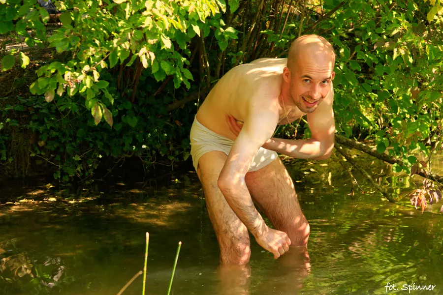 Zanim na dobre przełączyliśmy się na tryb maszerowania, postanowiliśmy cofnąć się trochę i skorzystać z dobrodziejstw, znalezionych wczoraj – źródełka i leśnego stawu. Po emocjonującym poprzednim dniu, po długich marszach i wspinaczkach należało się – na ile to będzie tylko możliwe – odświeżyć. Byliśmy spoceni, brudni, osmoleni od ogniskowego dymu a w dodatku przydałaby nam się kolejna dawka świeżej wody, tak więc bez zastanowienia udaliśmy się w stronę leśnej łazienki. Na miejscu wpadliśmy na pomysł, że zrobimy sobie pranie a przy okazji sami się wykąpiemy. Nie było wiadomo kiedy nadarzy się taka okazja, może nie prędko? A jeśli nie prędko, to w perspektywie następnej wyczerpującej podróży, jazdy i wędrowania w palącym słońcu było pewne, że zarówno my czulibyśmy się mocno nie komfortowo ale i ludzie nas spotykający mogliby czuć (zapachowo również) dyskomfort. Nie chcieliśmy do tego dopuścić i wszystko ładnie sobie wypraliśmy, umyliśmy naczynia i w końcu sami władowaliśmy się do stawu. Małe jeziorko w żadnym wypadku nie przypominało jacuzzi: woda była zimna, pływały w niej jakieś różnego rodzaju roślinki, liście, paprochy, było mułowato i daleko do przeźroczystości. Mydełko poszło w ruch, parę zanurzeń i po kilku minutach poczuliśmy się jak nowo narodzeni. W takim momencie zrozumiałem, jak nawet pozornie brudny i trochę zaniedbany stawik może człowieka postawić na nogi. Z całych sił doceniłem możliwość wykąpania się i wcale nie przeszkadzały mi warunki. Na niedzielnym spacerze z rodziną w lesie, z całą pewnością nie zacząłbym się nagle myć w stawie ale to była zupełnie inna sytuacja. Nie można wtedy wybrzydzać i trzeba korzystać ze wszystkiego, z każdej możliwości, którą podrzuci natura. Nie była to wszakże sytuacja z rodzaju życia i śmierci ale bardzo nam pomogła, dodała nowych sił i nastawiła wyjątkowo pozytywnie. Bo nie tylko fizycznie poczuliśmy się dobrze ale również psychicznie i mentalnie dostaliśmy pozytywnego kopa. Z przyrodą należy być za pan brat, powinno się korzystać, nawet w najmniejszej formie, z jej każdego rodzaju dobrodziejstw.