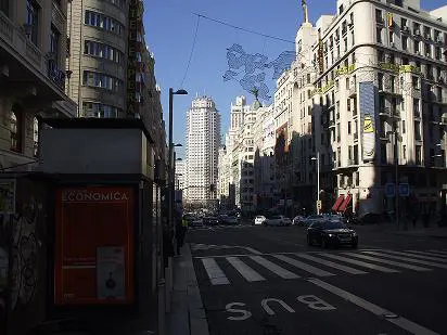 …GRAN VIA. Najważniejsza arteria Madrytu to wiecznie zatłoczona i zakorkowana Gran Via. Biegnie od Plaza de Cibeles do Plaza de Espana, oddzielając starą, południową część miasta od nowej, północnej. Współcześnie jest centrum handlowym miasta i jednym wielkim zabytkiem.