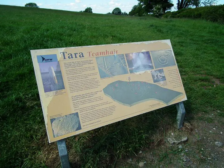 Nie ma chyba w Irlandii drugiego tak mocno przeszytego historią i legendą zarazem. Wzgórze Tary/Hill of Tara – przez całe pierwsze milenium to właśnie tu rezydowali arcykrólowie Irlandii. Zbierali się wraz z kapłanami co 3 lata ustalając prawa i rozstrzygając rozmaite spory. Jedna z barwnych sag głosi, że: w momencie gdy zwycięstwo wojowniczych Fomorian wydawało się nieuniknione, w Tarze zebrała się wielka narada wojenna zwołana przez Nuadę Srebrnorękiego , władcę tajemniczego ludu Dé Danaan. Pojawiło się wówczas bóstwo opatrznościowe – Lug Długoręki. Ciskając kamiennymi płytami o ściany pałacu i pokonując wszystkich w grze fidchell, udowodnił swe prawo do przewodzenia Danianom. Gdy nadszedł czas bitwy, Lug celnie rzuconym tathlunem (magicznym kamieniem) powalił wodza Fomorian, a zarazem własnego dziadka – Balora Jednookiego…
